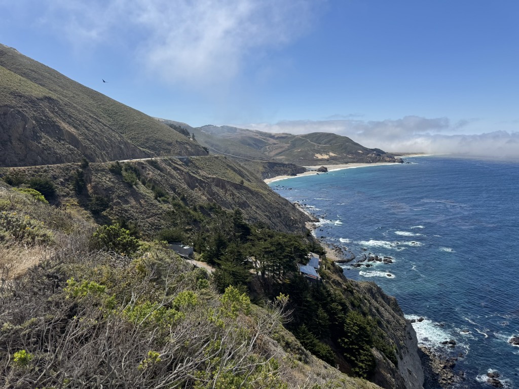 Nach einem erneut süßen Frühstück im Hotel, haben wir uns wieder auf den Weg zum Highway #1 gemacht. Wie Zuhause bereits in Erfahrung gebracht, ist nach wie vor ein Teil der Strecke gesperrt. Da wir trotzdem einige Aussichtspunkte auf der Route sehen wollten, sind wir einen Abschnitt des Highways doppelt gefahren, da das Wetter heute (im Gegensatz zu gestern) sehr sonnig war. Somit wurden wir mit vielen schönen Naturmomenten und traumhaften Aussichten für den doppelten Weg belohnt. Sicherlich am eindrucksvollsten war die Aussicht auf die „Bixby Creek Bridge„.
