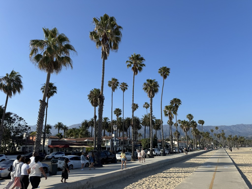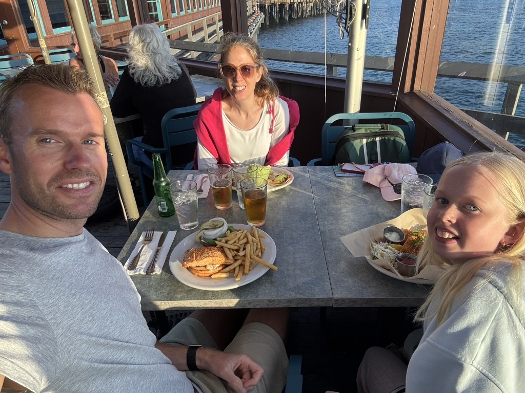 Durch die vielen (notwendigen :)) Stopps an den „Vista Points“, kamen wir dann etwas später im Hotel in Santa Barbara an, als geplant. Hier haben wir nur schnell eingecheckt und uns dann die traumhafte Kulisse am Strand in Santa Barbara angeschaut. Bergige Landschaft, viele Palmen, toller Sandstrand, auch hier wieder ein ganz neuer Eindruck. Verköstigt haben wir uns dann mit Fish & Chips, gegrilltem Lachs, Mac & Cheese mit Lobster sowie Fischtacos. inkl. Sonnenuntergang über den Bergen.