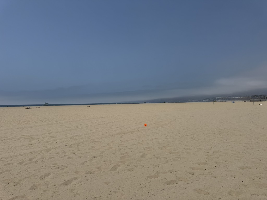 Wir sind dann die weiteren Strandabschnitte bis zum Venice Beach gelaufen und haben uns zwischendurch mit leckeren Getränken abgekühlt. Da der letzte Start der Bustour für 16.00 Uhr angesetzt war, haben wir uns frühzeitig an die entsprechende Haltestelle gestellt. Hierbei haben wir tatsächlich unseren ersten Kolibri sehen können. Ihn auf einem Foto „einzufangen“ war echt knifflig, aber es ist uns doch gelungen. (Siehe Foto mit dem Asphalt.)