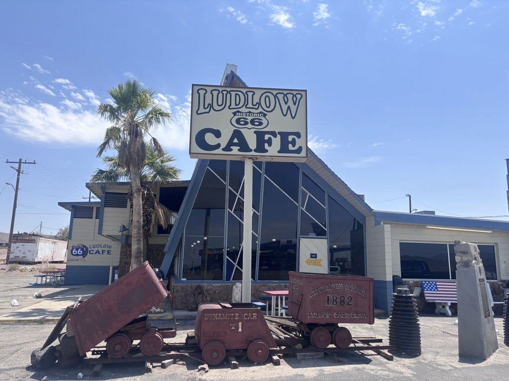 Nach einigen Pausen haben wir noch in einer typisch amerikanischen Raststätte einen Route 66-Magneten für unseren Kühlschrank gekauft, denn wir sind einen großen Teil der Strecke neben der Route 66 gefahren.
