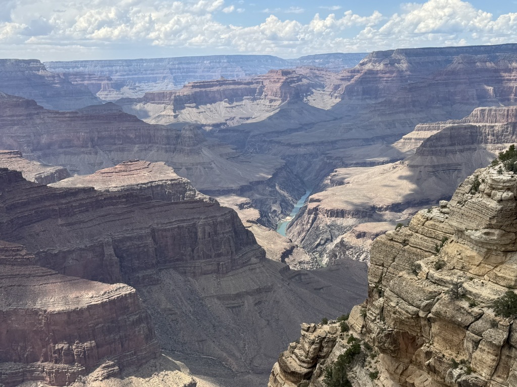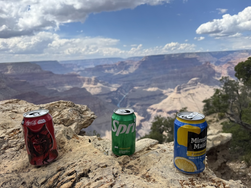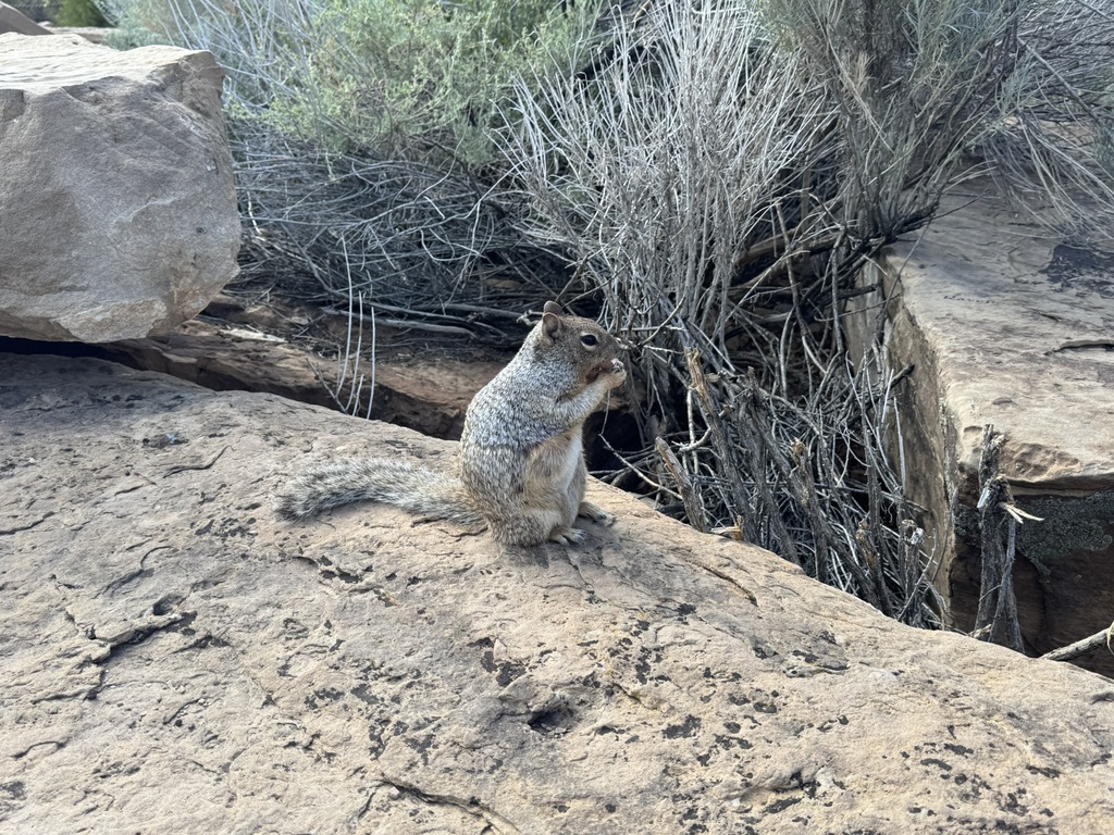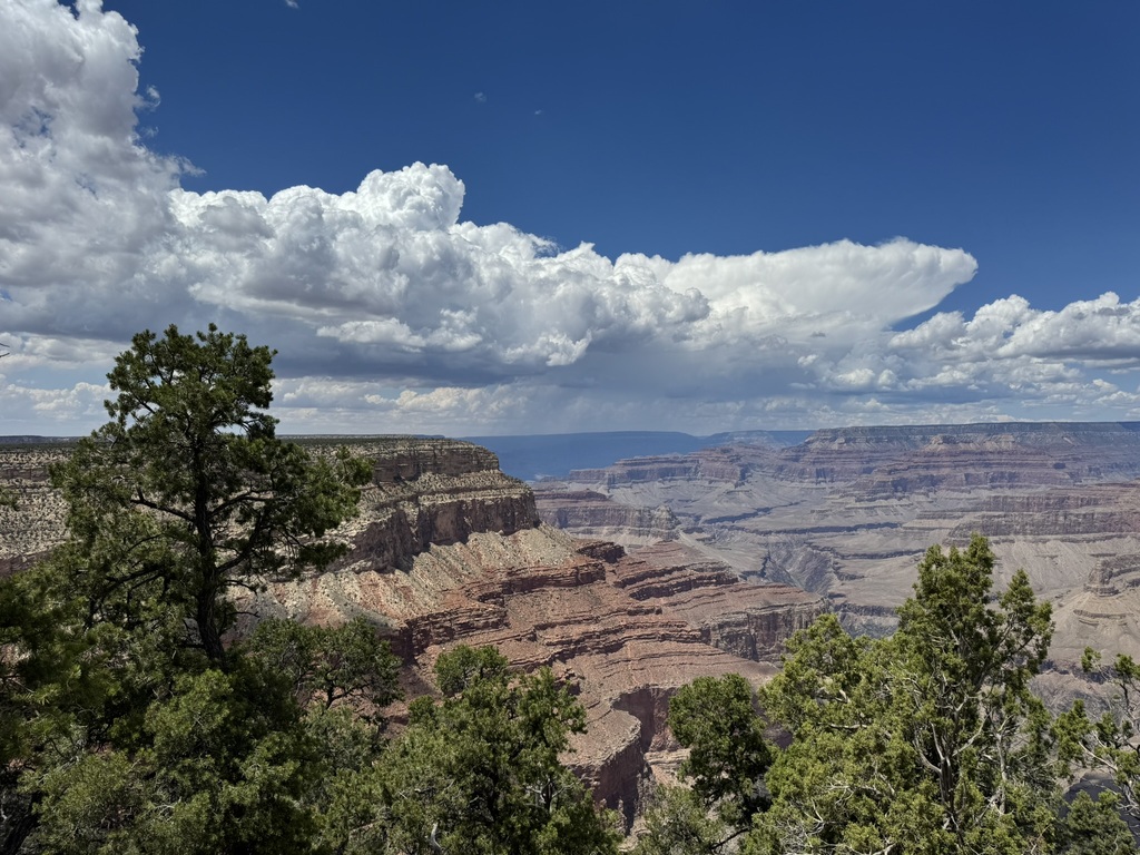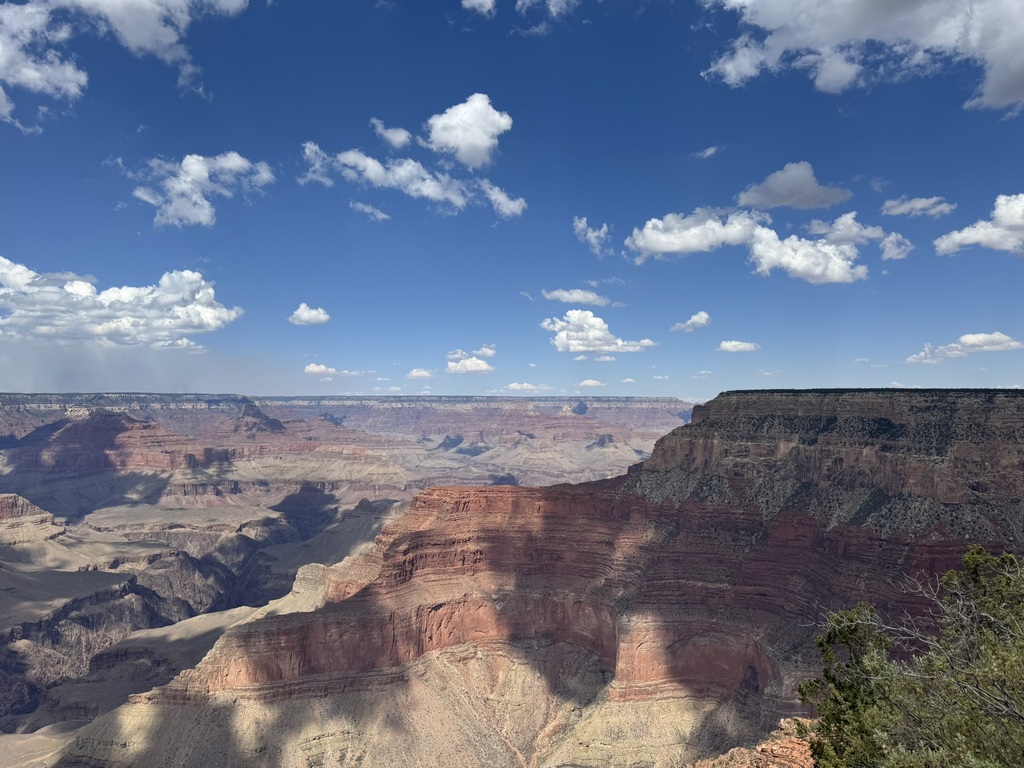 Den Shuttle-Bus haben wir dann am höchsten Punkt der Route, dem Hermits Rests, verlassen. Eingedeckt mit kühlen Getränken und leckerem Eis aus dem Shop, haben wir uns dann auf eine etwa einstündige Wanderung entlang des Canyons begeben. Da viele Besucher des Canyons lediglich die Strecken mit dem Bus abfahren, hatten wir immer wieder Chancen, ganz alleine an tollen Aussichtspunkten zu sitzen und hierbei den Inhalt unseres Rucksacks leer zu essen bzw. zu trinken.
