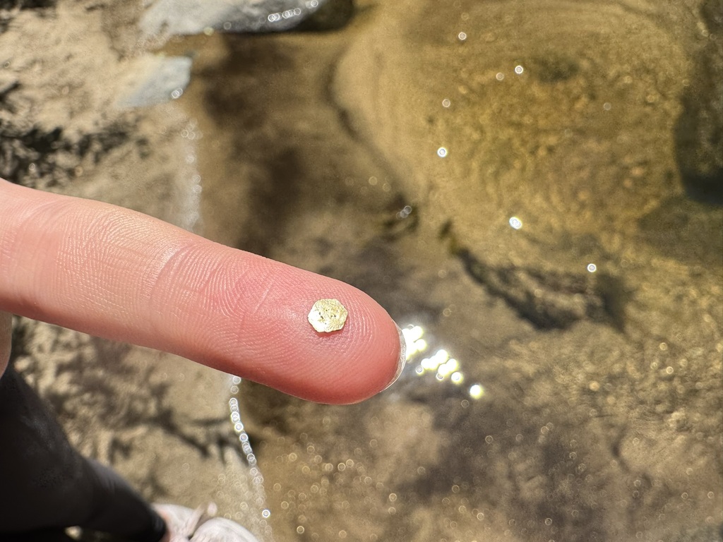 Dort gab es an den Steinen am „Ufer“ etwas Gold. Das war aber nicht wirklich echt, sondern Reste von Felsen, die sehr gold gefunkelt haben (siehe Foto). Das sah echt toll aus!