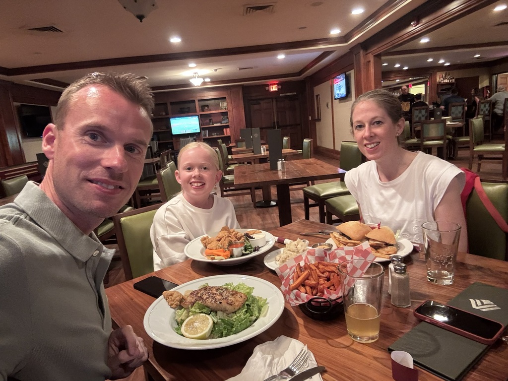 Nach der Poolsession haben wir uns geduscht und sind dann zum Abendessen im Hotel gegangen.