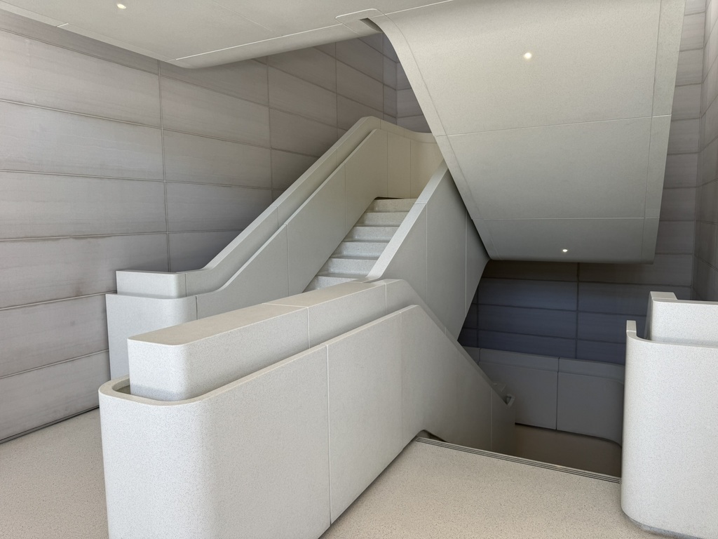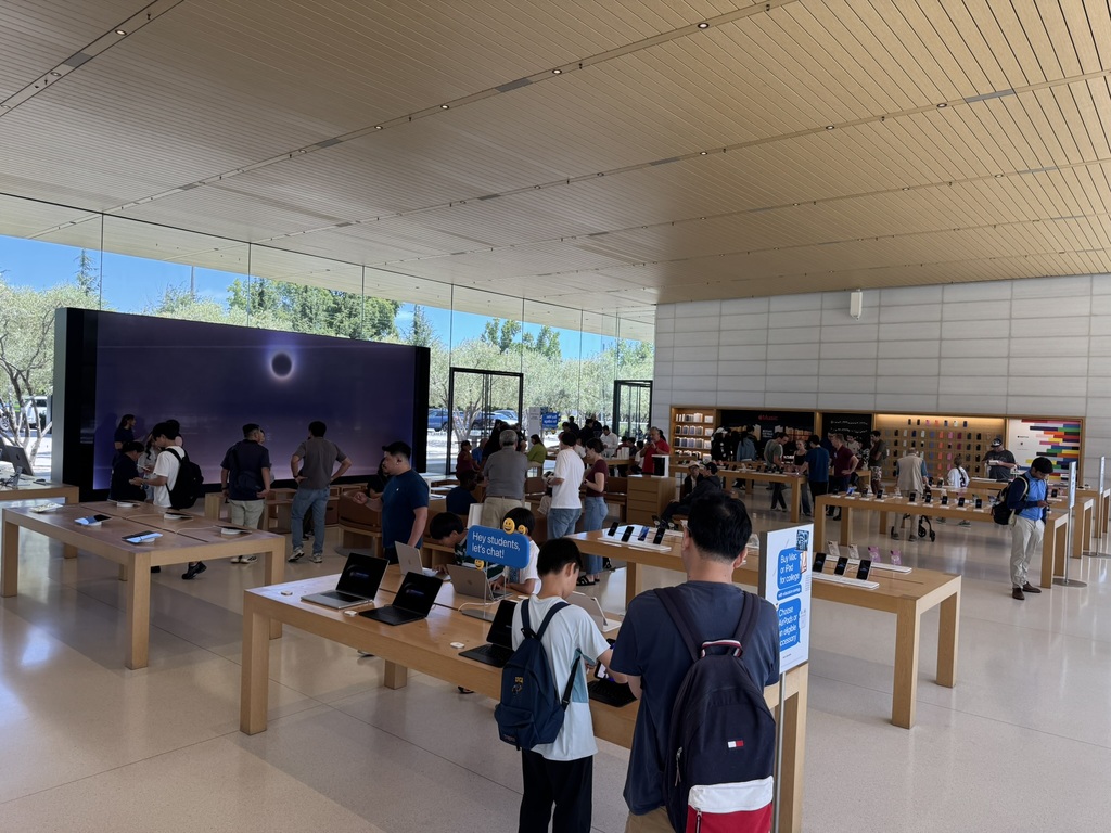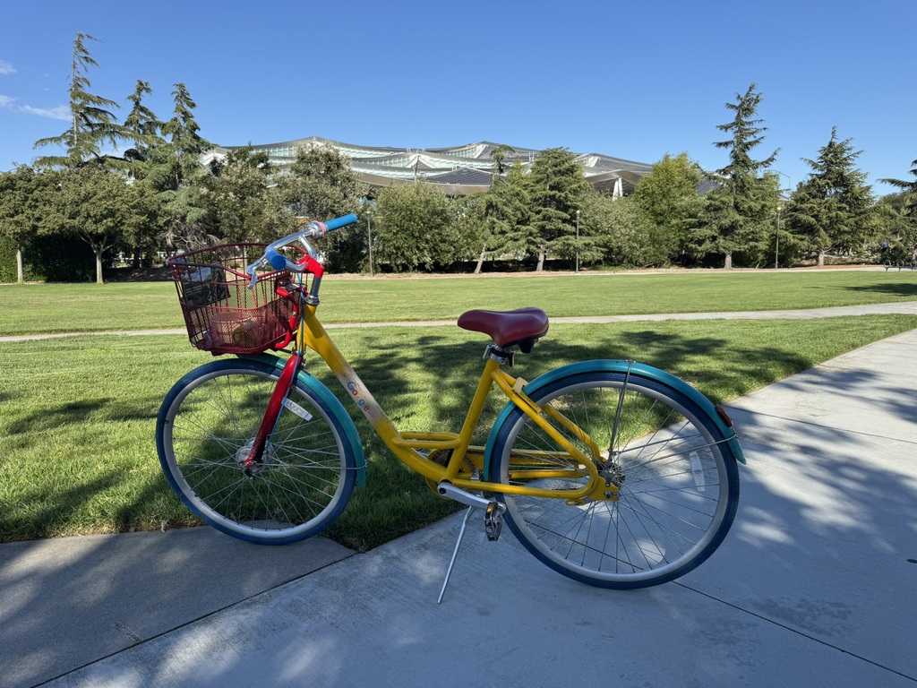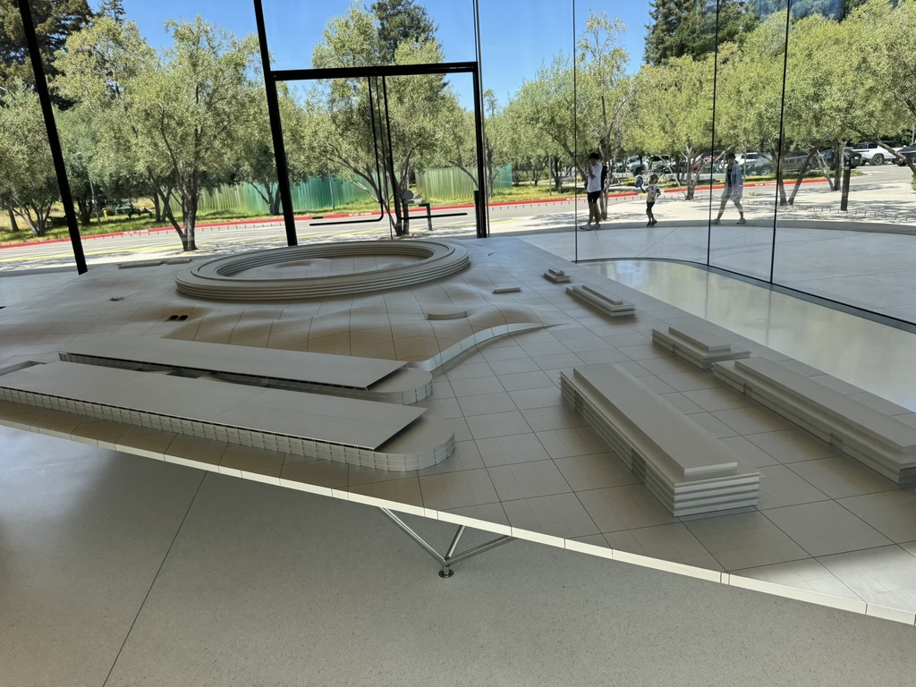 Mit dem Frühstück im Auto haben wir uns dann auf direktem Wege nach Mountain View begeben, Fahrtzeit knapp 3,5 Stunden. Da unser Termin während der Fahrt auf 15:00 Uhr festgesetzt wurde, sind wir doch erst zum Hotel gefahren und haben eingecheckt. Danach hatten wir noch etwas Zeit und wir sind direkt zum „Apple Park Visitor Center“ gefahren um uns einmal die „Wirkungsstätte“ der Apfelmacher anzuschauen. Der Einstieg ins Gebäude verlief ganz interessant, da uns direkt ein iPad in die Hand gedrückt wurde. Wenn wir dann mit der Kamera des iPads auf das „Raumschiff“ des Apple Parks gehalten haben, konnte man beispielsweise das Dach hochfahren lassen, oder auch das energetische Verhalten bei Wind und Sonne simulieren. Wirklich interessant, was sich die Konstrukteure / Architekten da überlegt haben. Der Rest des Gebäudes war relativ unspektakulär bzw. wie ein normaler Apple-Store. (Tatsächlich war der Weg zu den Toiletten noch sehr interessant, da selbst die Wege, Fliesen usw. statt eckig eben rund waren, wie es schon damals immer die Vorliebe von Steve Jobs war.)