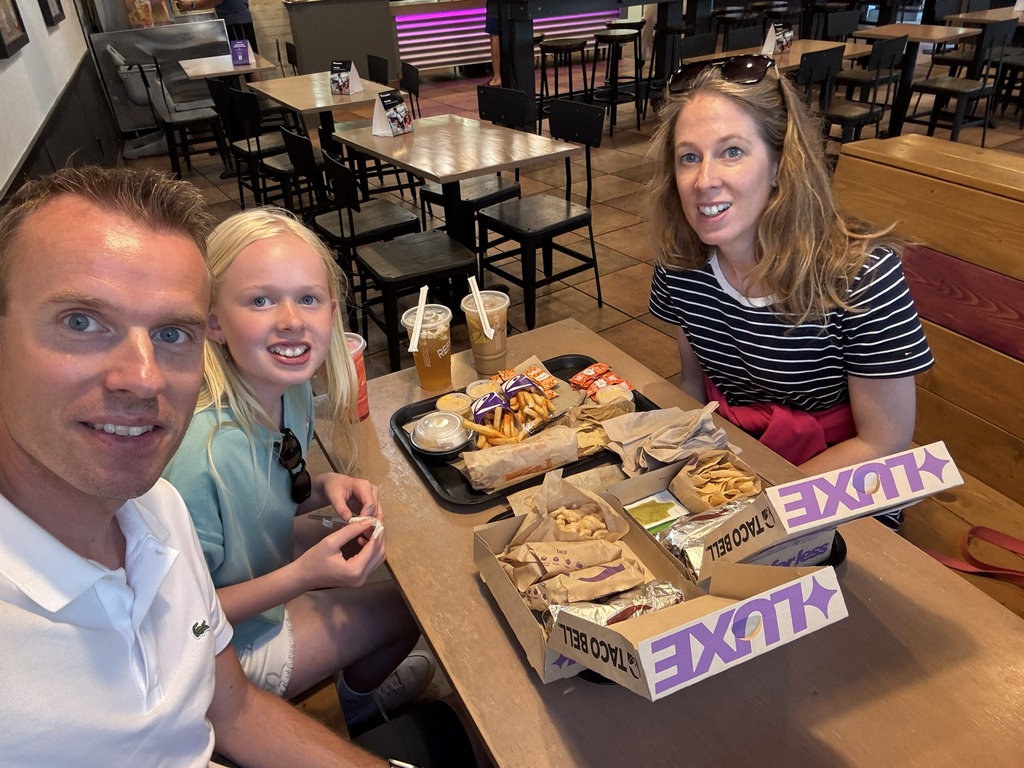 Den Tagesabschluss haben wir dann nach kleineren Spaziergängen bei „Taco Bell“ gemacht, Silvia sprach hier bereits am Anfang der Reise davon, dass dies ein „Muss“ für diese Reise sei. Letzter Tag, puh. Das war knapp! 🙂 (Zur Info: zwischen Mittagspause und Abendessen war tatsächlich mehr Zeit, als es Zeilen in diesem Artikel gibt.)