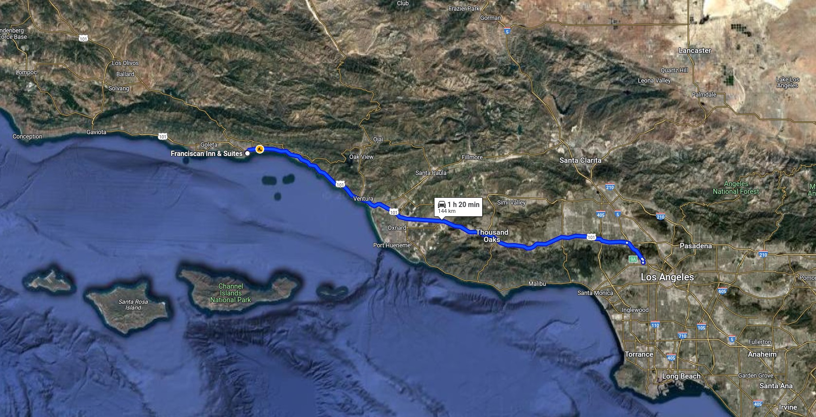 Start: Franciscan Inn & Suites, 109 Bath St, Santa Barbara, CA 93101