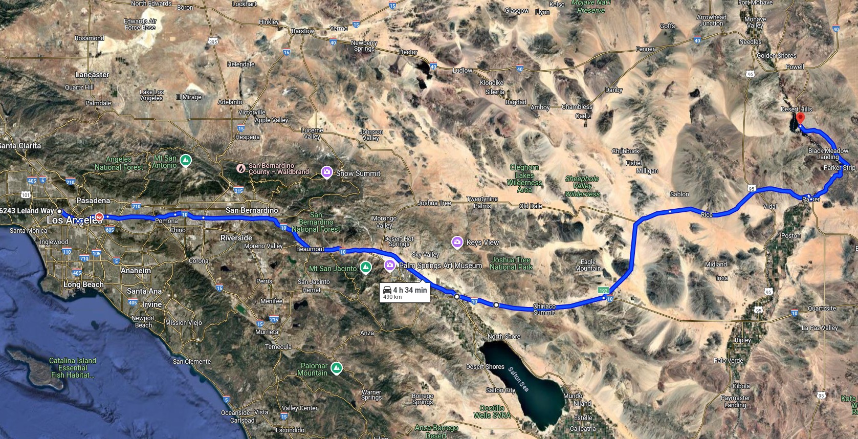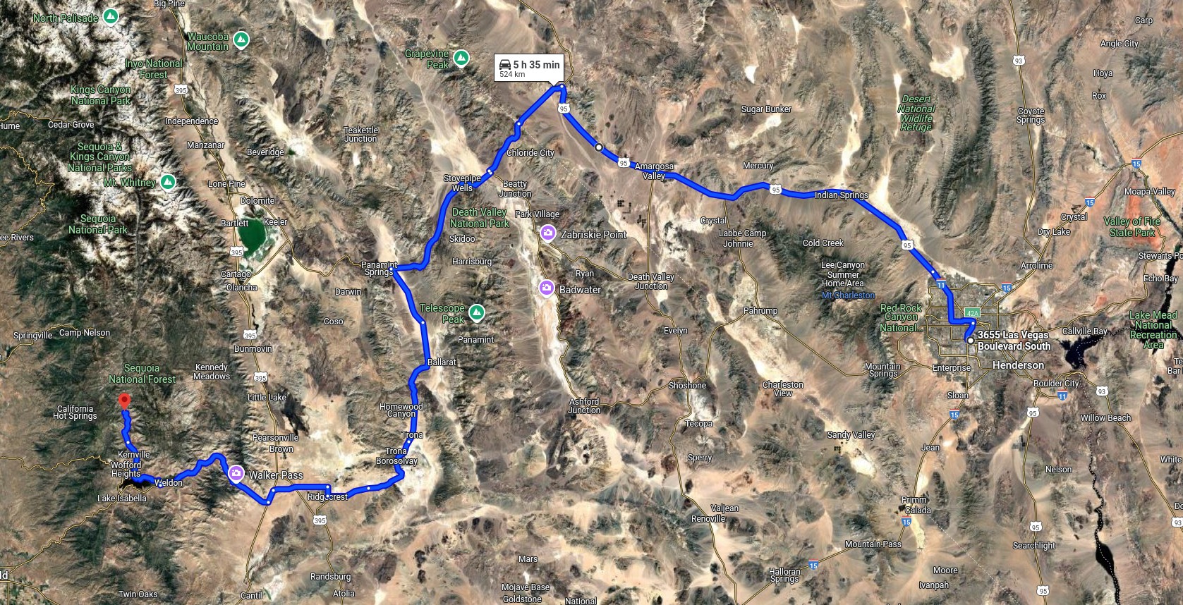 Dauer ca. 5:35h, 524km (durch das Death Valley)