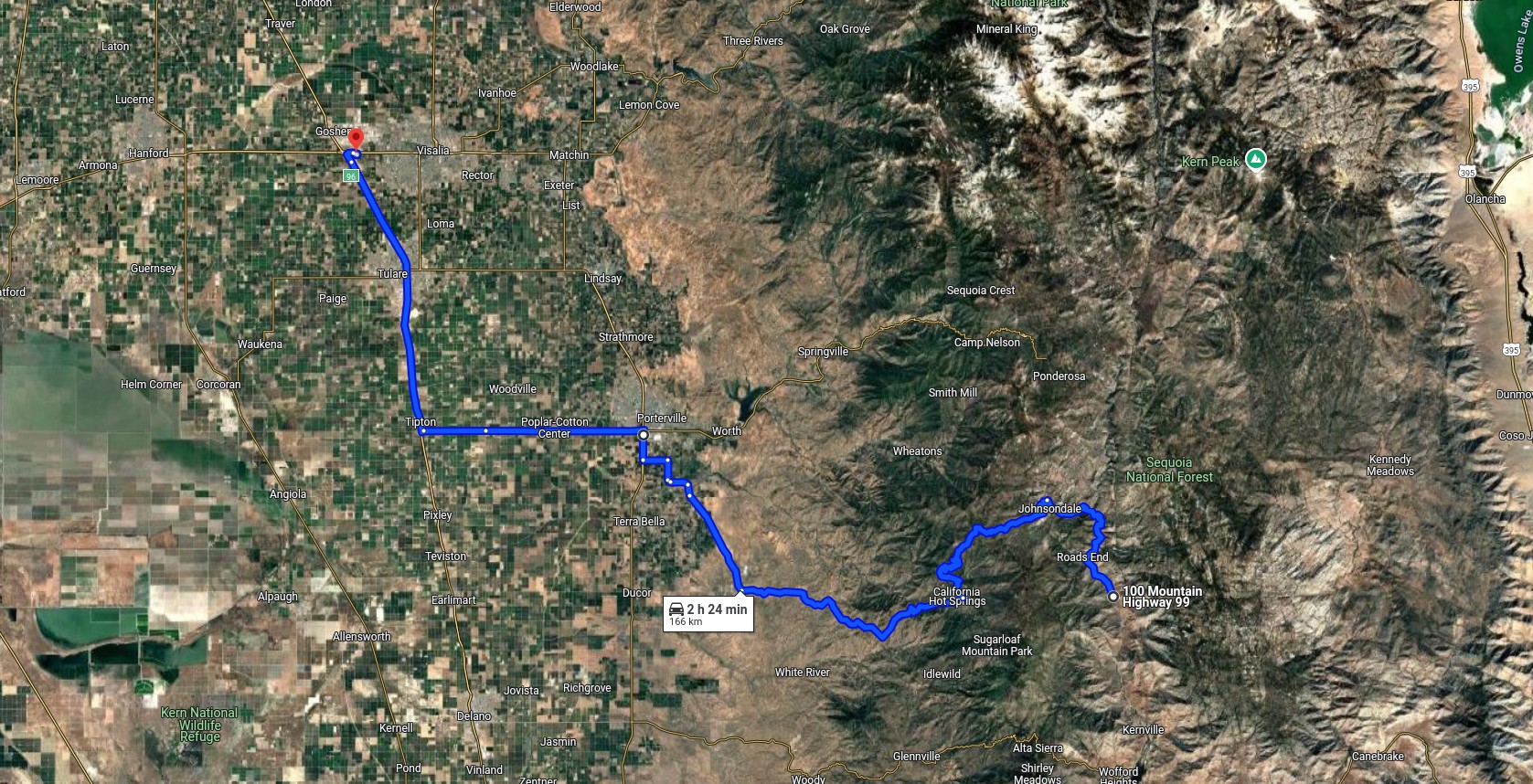 Start: 100 Mountain Hwy 99, Kernville, CA 93238