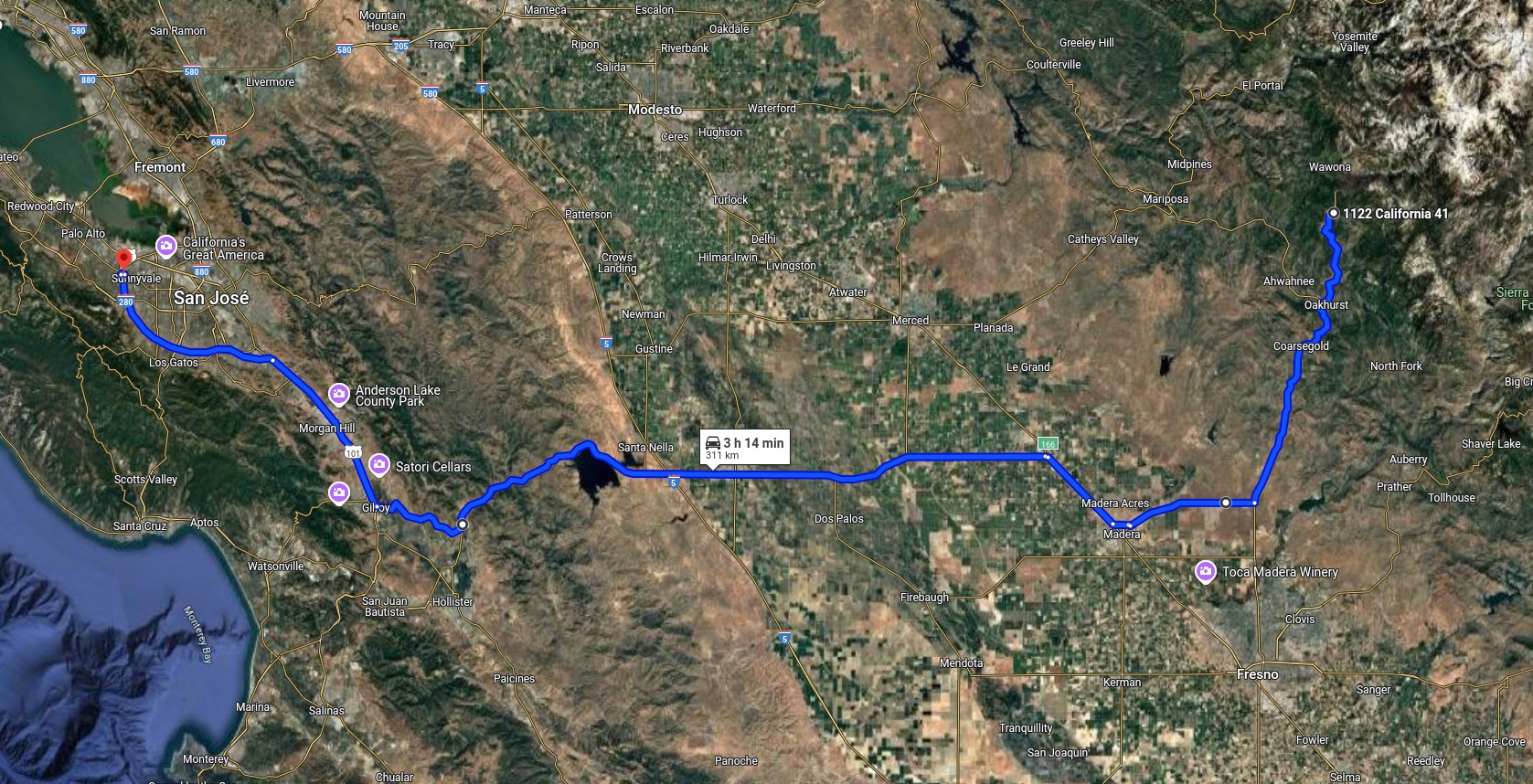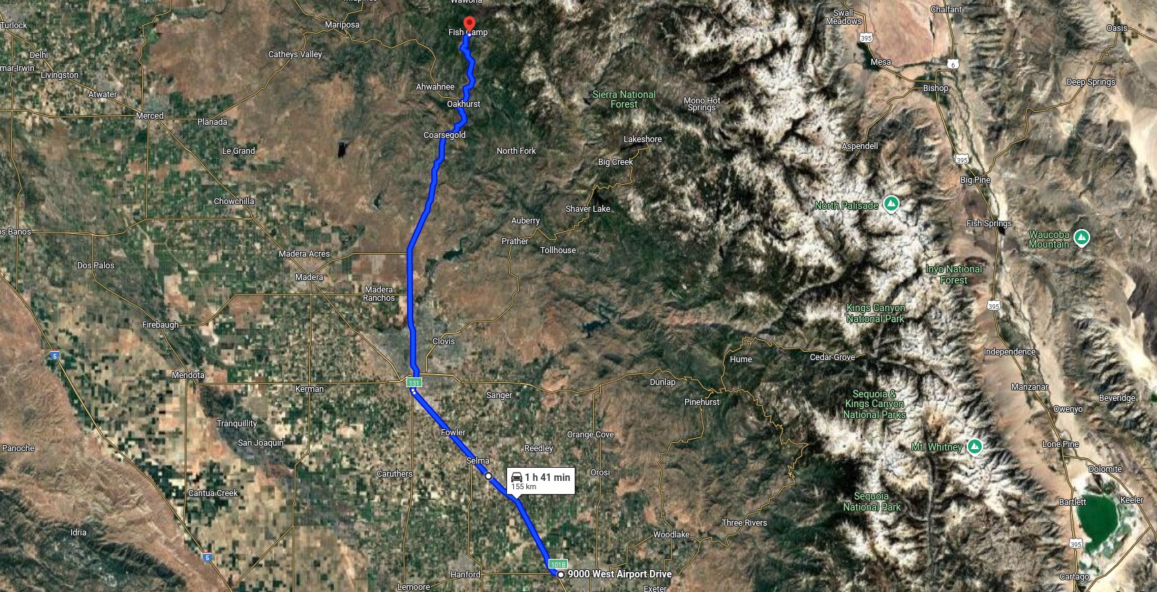 Start: 1122 CA-41, Fish Camp, CA 93623