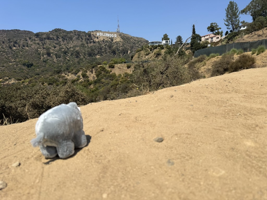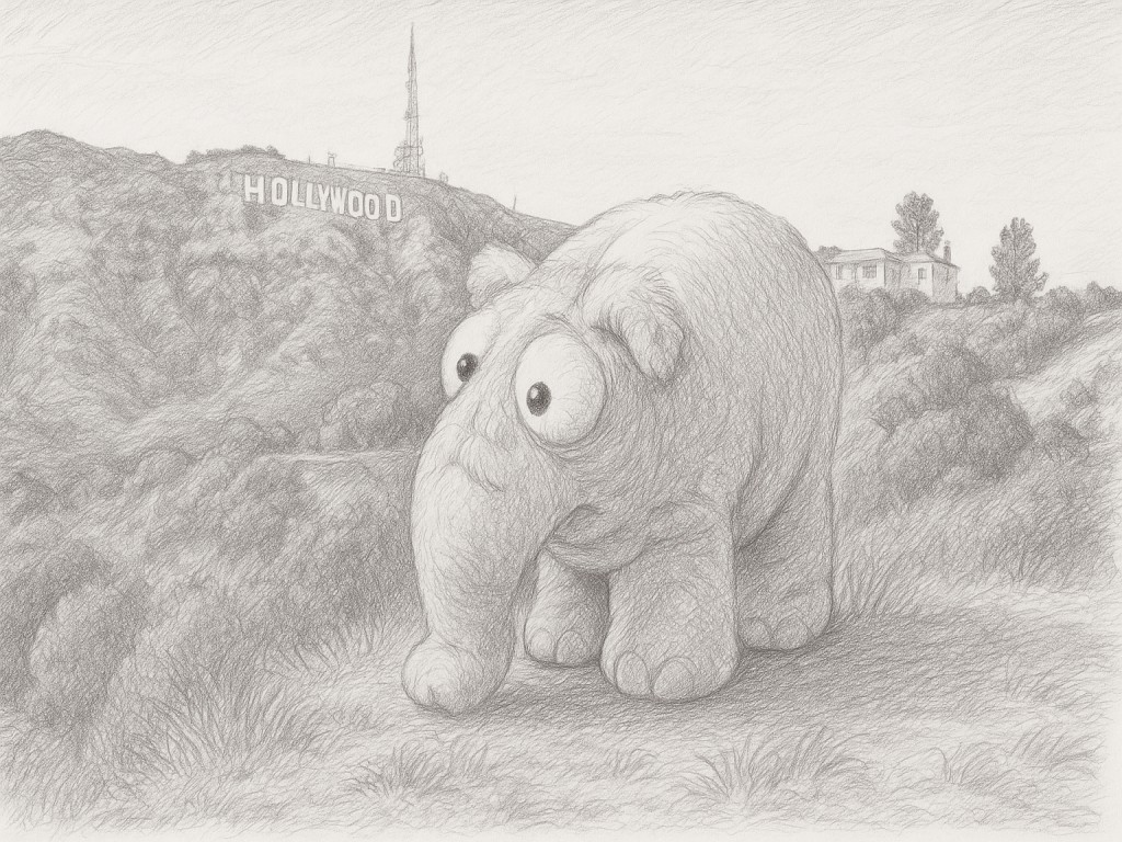 14.07.2025 – Hollywood. Ottifant im Rucksack, aber kein Foto. Die KI musste nachhelfen. Aber: er war da 🙂